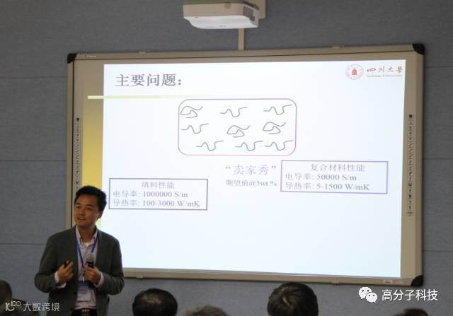 西北工业大学殷小玮教授、四川大学邓华教授、上海大学丁鹏研究员、美国阿克隆大学Jiahua Zhu(朱家华)助理教授、西北工业大学顾军渭副教授、中科院宁波材料所虞锦洪副研究员、四川大学徐家壮副教授、上海大学王金合副教授和西北工业大学周永存副教授分别做了《结构功能一体化碳化硅陶瓷基复合材料》、《功能高分子复合材料的加工成型--导热填料网络的构筑》、《各项异性导热复合材料的结构设计与性能表征》、《Engineering Hydrogen Bonding Interaction in Polymeric Thermal Conductor》、《"原位聚合-静电纺丝-高温模压"法制备功能化石墨烯/聚酰亚胺导热复合材料》、《高导热聚合物基复合材料研究》、《高导热UHMWPE/BN复合材料研究》、《多尺度复合热界面材料及其应用》和《纳米复合材料的微结构设计与调控及其对介电、导热性能的影响》的技术研讨报告,多角度、多层次阐述了导热复合材料的结构设计、制备方法、模型构建和导热机理等途径和问题。