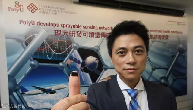 香港理工大学(理大)的研究团队新近研发了一种崭新的纳米复合材料传感器,可直接喷涂于平坦或弯曲的工程结构,如火车路轨和飞机结构。喷涂出来的传感器可以进一步构成传感器网络,为受监测的结构提供实时及丰富的结构健康状况信息。这种传感器重量极轻,而且制造成本低廉,可大量采用以检测隐藏在结构内部的问题,有助开创以超声波为基础的结构健康监测新时代。