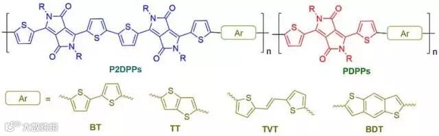 目前报道的大部分高性能有机半导体材料是p型或n型材料。针对高性能双极性有机半导体缺乏的现状和面临的挑战,中国科学院化学研究所的刘云圻院士课题组与华中科技大学的王帅教授课题组合作,在高性能双极性聚合物半导体材料的研究领域取得了重要进展。基于经典的吡咯并吡咯二酮(DPP)受体,他们利用受体(DPP)二聚策略,首次报道了双吡咯并吡咯二酮(2DPP)新型聚合物,系统研究了DPP和2DPP类聚合物的光学、电学及OFET性能的变化规律。