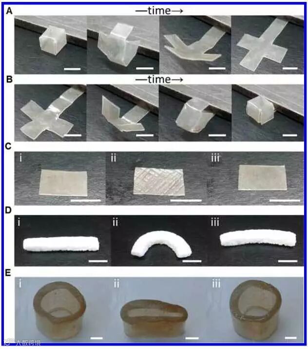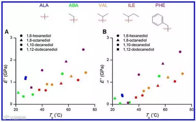 Becker教授研究团队通过基于不同氨基酸与二元醇反应制备了一系列具有优异形状记忆行为的聚酯脲材料。该类材料具有较宽的玻璃化转变温度和存储模量变化范围,使其在双重和多重记忆响应方面性能优异。此外,材料其机械和形状记忆性能是基于聚合物链结构中的多重氢键作用,避免了化学交联点的引入,增加了材料的可加工性,拓展了其应用范围。