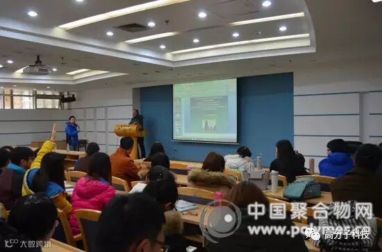 报告会前,刘勇老师首先介绍了Alexey Iordanskii教授的简历。随后,Alexey Iordanskii教授用通俗易懂的语言为大家作了一场精彩的报告。在报告中,Alexey Iordanskii教授为师生介绍了他们组在聚羟基脂肪酸酯类新型可生物降解聚合物及其复合材料方面的最新研究进展。他结合学术研究和生物医学应用,比较了聚(3-羟基丁酸酯)[ PHB ]复合材料和其它天然和合成聚合物的降解行为以及他们的扩散现象。复合材料同时负载有磁铁矿(Fe3O4)和低分子量成分的应用。随后又讲解了不同极性的二级成分的变化调节形态,水和药物扩散以及复合材料的热物理和机械性能。最后,对可生物降解的磁敏复合材料的应用前景进行了展望,分析了从合成聚合物复合材料(侵蚀的材料)到完全降解的生物医学系统转移的前景。