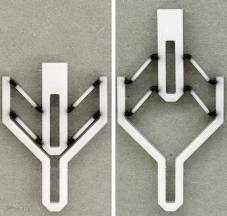 该科研团队开发出一种计算机模拟软件,其核心是设计出一种特殊的枢纽单元,它由一个固定(刚性)的部件和一个可移动(弹性)的部件构成,具有多种稳定状态。由这种枢纽单元可组合成复杂的三维结构,并因为各个单元具有有限几种稳定状态,可根据预先设计的目标结构对其变形的过程进行精确的设计。科研人员已应用标准的3D打印设备在平面上一次打印出一个作为验证原理用的样品,其枢纽单元具有两种稳定的状态,其主体结构(固定部件)用塑性高聚物为材料,可移动部分用弹性高聚物为材料,对所获得的这种具有平面结构的样品用手工调整其枢纽单元的状态后可形成各种不同的立体结构。科研人员称,正在对结构变形的过程设计适当的动力装置,如气压装置或者应用在不同湿度环境中具有膨胀性能的材料,完成结构的自动变形过程。