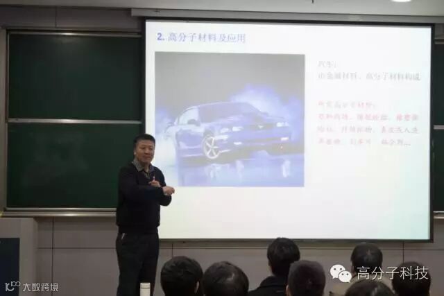 主持人开场、楼仁功老师致辞后,开始了“漫谈高分子”的讲座。高长有教授的介绍由浅入深,从生活中的塑料、汽车等等谈到更高端前沿的课题——药物载体和医疗器械,让同学们更深一步了解高分子,体会“聚合文化”的魅力。接着,话题转向了大家最关心的问题——就业。高分子专业80%的学生都会选择深造,从1999年到2015年,研究生数量翻倍,研究前景相对广泛。更进一步,高教授从学术谈到人生。随着时间推移,我们不仅要有身体的成长,更要有心理的成熟,培养各方面技能,成为领域中的精英分子。最后,教授为我们提出建议,要珍惜当下时光,学好基础课程,培养良好人格。