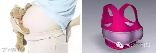 童装、孕妇装、女性文胸等尤其需要织物的负泊松比性能。负泊松比织物易于在横向和纵向同时延伸,使得合身的衣服可供小孩穿较长时间,避免频繁购买的同时也保证合身性。孕妇装的腰腹部采用负泊松比织物可自然地形成贴合腹部形状的圆拱形,同时不会产生太大压力。同样,负泊松比间隔织物可生产无需过多裁剪的女性文胸,其球面贴合性优于传统织物,透气透湿性也优于传统海绵。