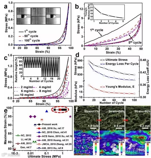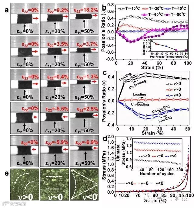 不收缩、结构不坍塌。通过该技术所得到的气凝胶具有比传统冷冻干燥或者超临界干燥技术所得材料更为优良的性能,例如高达99%的可恢复压缩超弹性、大范围可调节泊松比特性、高电导率、稳定压阻效应以及超低导热系数等。这种低成本、高产出和易操作的自然干燥技术不但可以极大程度推动石墨烯气凝胶超材料的大规模和大尺度商业生产,而且提供了一种基于泊松比特性设计的石墨烯超材料研究方法,使其可广泛应用于柔性驱动器、柔性机器人、传感器、可变形电极材料、药物传输和投放、超轻隔热保温及防护材料等。