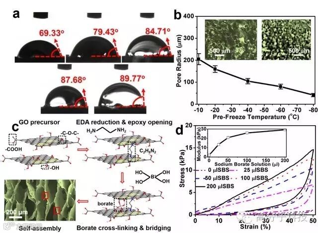 为了在宏观尺度上利用石墨烯的优异特性,构筑石墨烯的宏观体结构成为目前材料领域的研究热点。在众多石墨烯组装体结构中,石墨烯气凝胶(GrapheneAerogel)是最引人注目的结构之一。目前,三维石墨烯气凝胶宏观体的制备过程需要采用高成本、低产出、难操作的冷冻干燥技术或超临界干燥技术,去除石墨烯水凝胶中的溶剂,从而得到最终的气凝胶结构。李惠教授课题组通过调节石墨烯气凝胶结构的初始刚度和溶剂蒸发的毛细应力,成功实现了该材料的自然干燥制备,实现了常温常压下蒸发样品所含溶剂并保持其