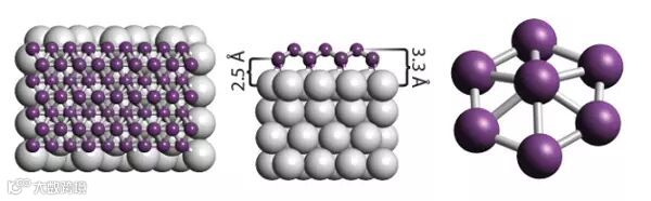 硼烯在银表面的结构示意图(红色,暗红色表示硼原子的起伏)