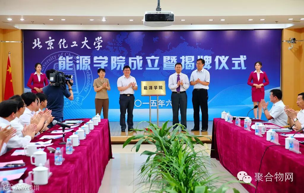 2015年6月12日,北京化工大学能源学院成立暨揭牌仪式在学校会议中心多功能厅举行。校党委书记王芳教授、校长谭天伟院士及全体在京校领导出席仪式。学校各职能部处与直属单位负责人,各学院书记、院长,师生代表,以及新闻媒体代表等100余人参加了成立仪式。出席揭牌仪式的校外嘉宾有科技部高新司材料处陈其针处长、北京市科委新能源与新材料处许心超处长、北京大学工学院张东晓院长等。