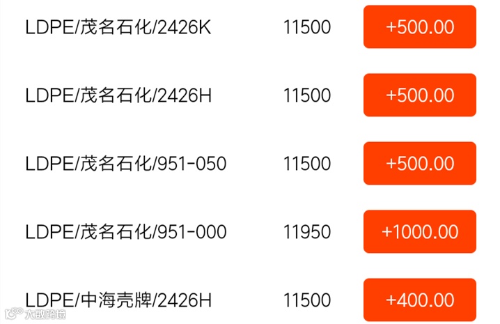 昨日LDPE市场价格继续上涨,茂名石化/951-000日涨1000元/吨!期货大涨,部分石化厂家上调出厂价格,加之神华新疆高压装置检修,茂名石化周末检修两天,货源偏紧,预计短期内LDPE市场价格继续上涨为主。