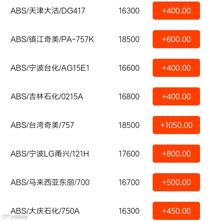 国内ABS华南市场价格大幅上涨,台湾奇美/757日涨1050元/吨!主要受原料苯乙烯的带动,目前成本端形成有利支撑,但终端对高价货存抵触心理,高价成交受阻,预计短期ABS市场价格继续上涨为主,
