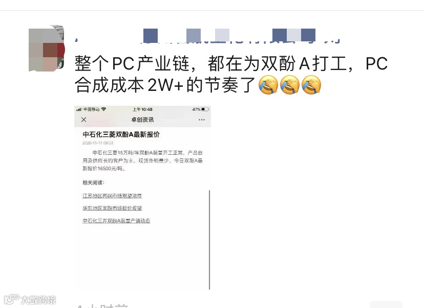 10日,中石化三井双酚A工厂暂停报价。产品主要供应长约用户。