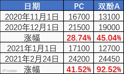(PC及双酚A涨幅)