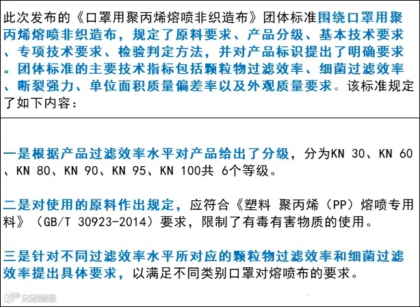 江苏省市场监督管理局明确此标准发布,将是对熔喷布产品标准与防护口罩产品标准的有效衔接,能够从技术