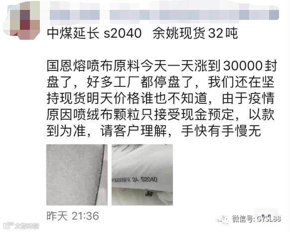 同样,江苏南通一家生产聚丙烯的企业透露,现在熔喷布的原料还维持在2万上下,每一天价格都在浮动,2月中旬也大概是这个价格,没怎么变,价格上涨主要是被炒起来的,很多不是这个行业的人都在囤货,参与市场交易。