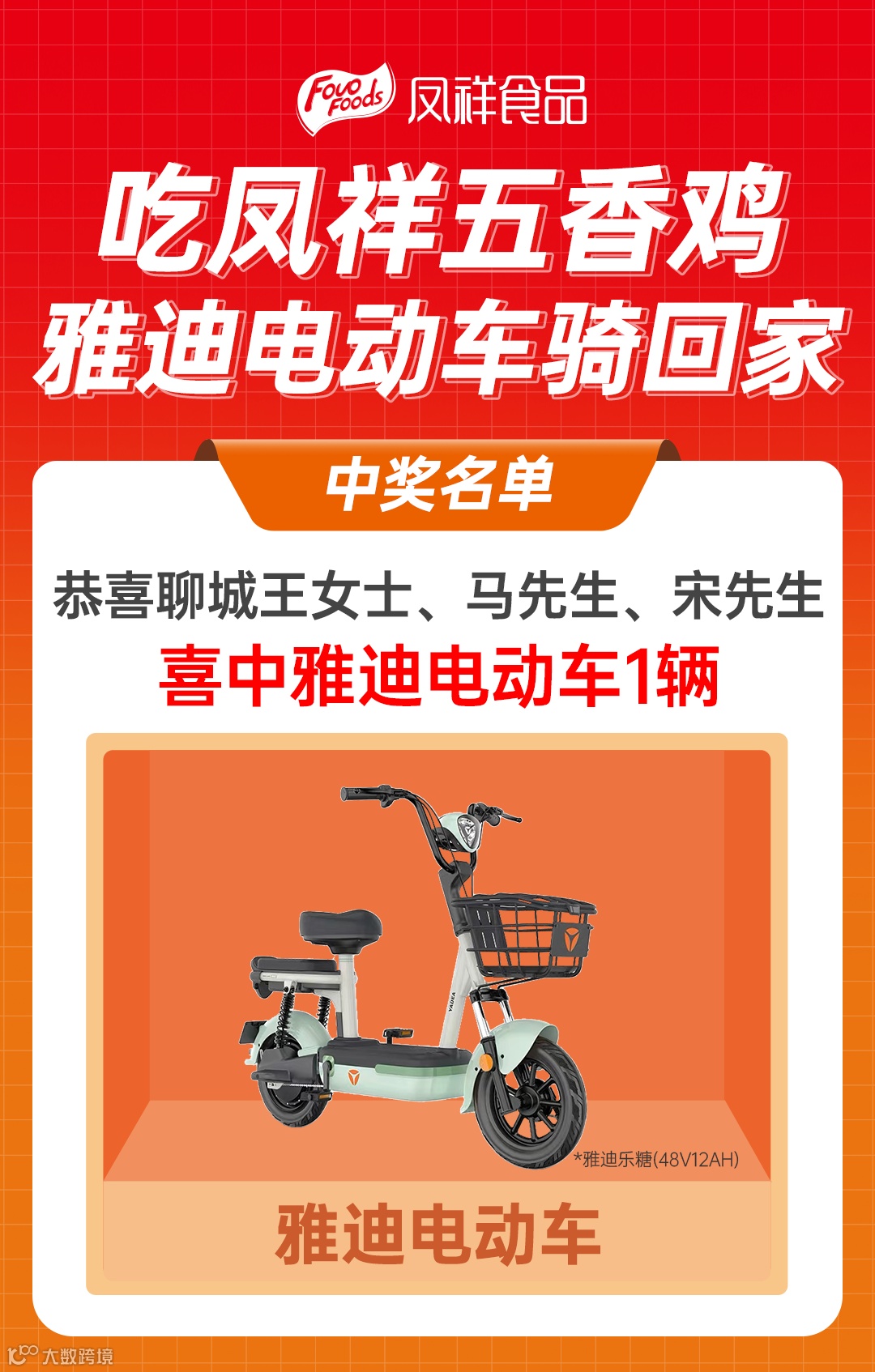 “吃凤祥五香鸡,抽雅迪电动车”的活动