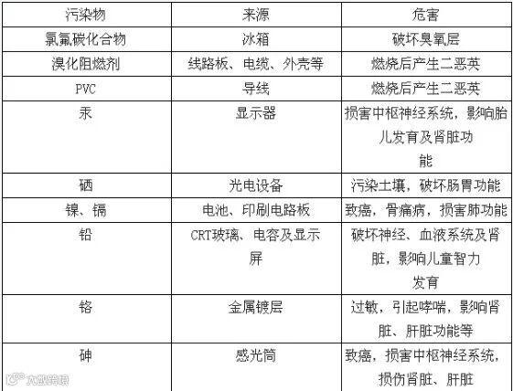 废弃电器电子中主要污染成分及危害