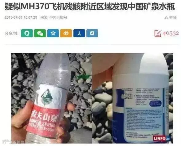 就连马航MH370飞机残骸附近也出现了农夫山泉的身影: