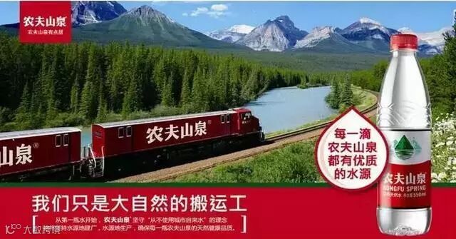 都知道,农夫山泉的广告语“我们不生产水,我们只是大自然的搬运工。”这句话影响了中国无数消费者,不知不觉中大家认为喝农夫山泉,就意味着喝大自然,甚至你脑子里闪过“农夫山泉”四个字,就等于和大自然来了场神交。而你出2块钱买的并不是水,而是大自然的搬运费,因为大自然不属于任何一家企业。