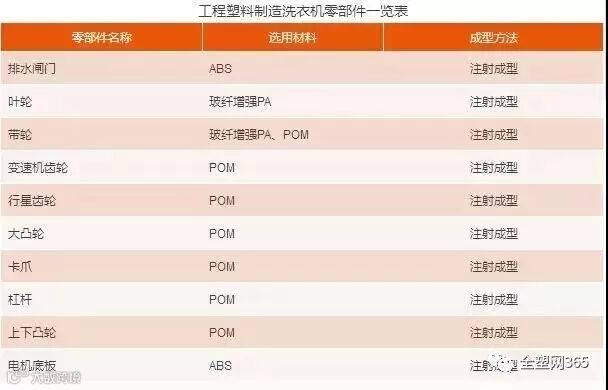洗衣机也是使用塑料件较多的家用电器之一,主要包括内筒、底座、波轮等,一台双缸洗衣机使用塑料约7-12千克,全自动洗衣机可达20千克,占洗衣机总重量的30%左右。其中,使用的最多的是通用塑料PP,工程塑料用的较多的是POM、PA和ABS。