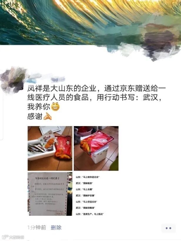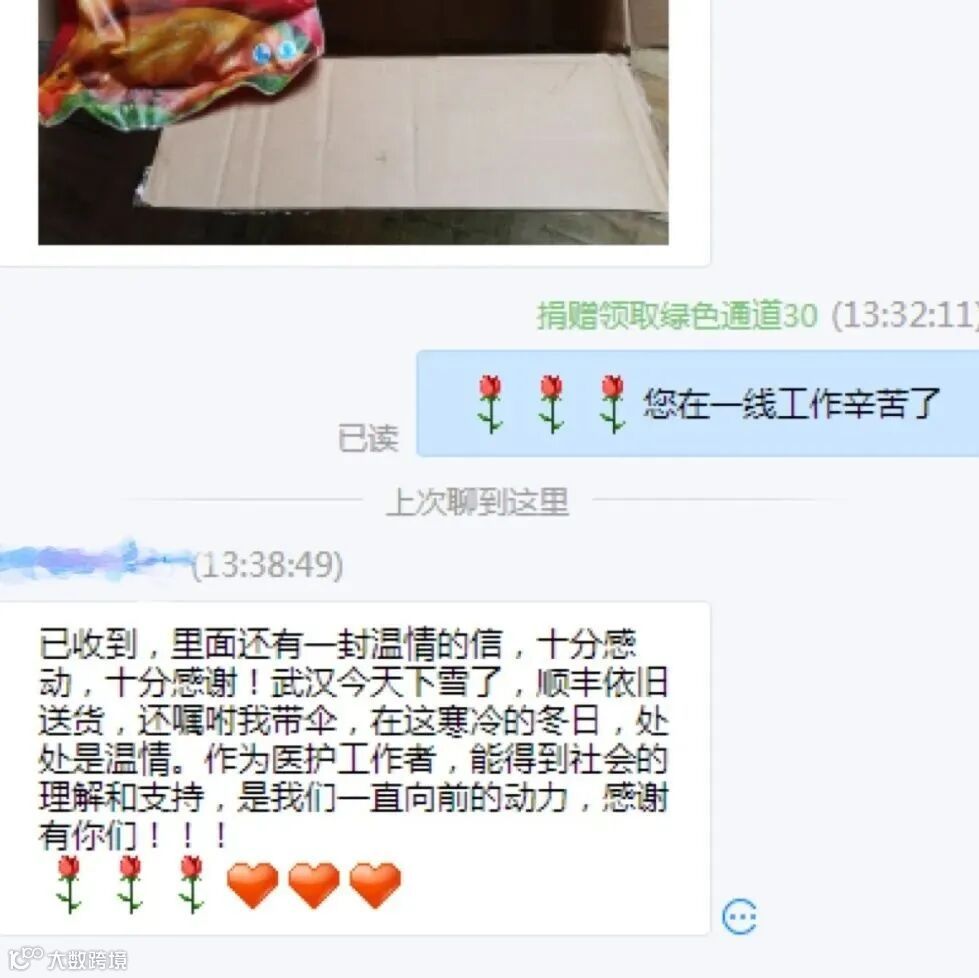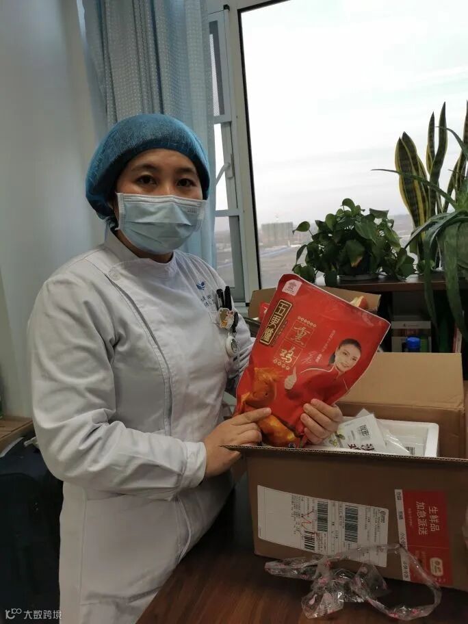 将鸡肉加油包送到湖北医护人员手中