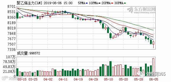 盘面情况:L1909开盘7640元/吨,最高报7665元/吨,最低报7495元/吨,收盘7510元/吨,较上一交易日-1.57%;成交量566046手,+66646手;持仓742830手,+74352手,基差390元,+135元,9-1价差80元,+5元。