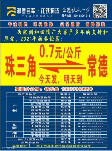 2021年新春来临之际,我司特重磅推出:珠三角直达