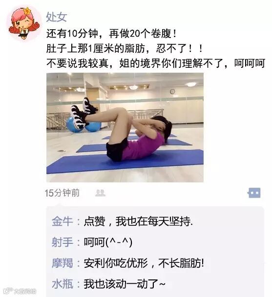 导读:如果12星座在朋友圈展示自己的健身故事……