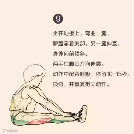 答:改善柔韧性,每个拉伸动作应当保持20~30秒。