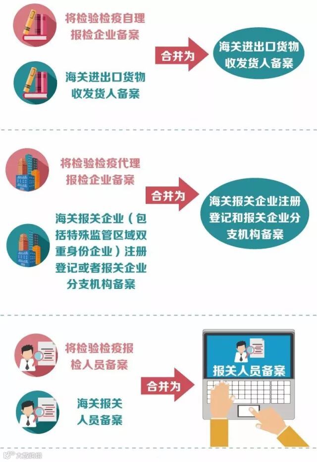 4月20日起,企业报关报检资质合并,这是出入境检验检疫管理职责和队伍划入海关总署后的一项业务优化整合。企业只需通过国际贸易“单一窗口”进行网上申请并到现场业务窗口一次性递交材料,通过审批后即可同时获得报关报检资质,实现了“一次申请,一并办理”,改变了过去企业两头跑、两头申报的办理方式,提高了行政管理效能,降低了企业经营成本。