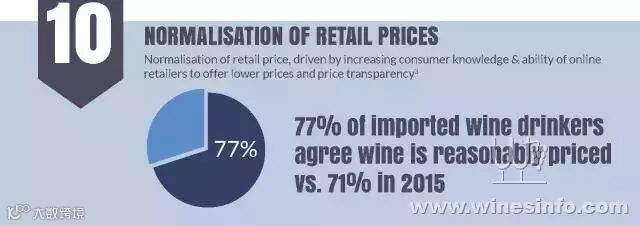 77%的进口葡萄酒饮用者认为葡萄酒定价合理。在2015年这个数字是71%。