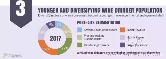 葡萄酒消费人群更加多元,整体更趋年轻、更愿意尝试不同类型的葡萄酒,对葡萄酒态度更开放。