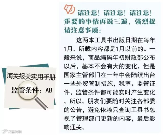 2、有了8位税号就可以轻松查询通关参数了,这时候10位编码的《报关手册》就派上用场,税率、退税率、监管证件、监管条件、海关新近管理规定,全都有了。