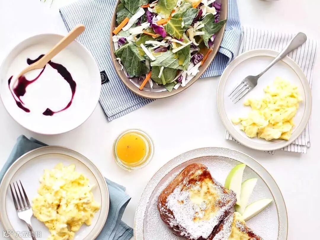 吃主食之前,一份沙拉下肚至少可以让每顿热量下降10%。 不过大家要小心选择沙拉酱哦,像淋上两勺热量就超标的千岛酱绝对要拒绝!几滴柠檬汁或者酸奶就可以啦~