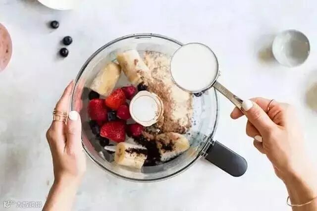 蔬果燕麦思慕雪中的粗纤维可以有利于肠胃蠕动和排毒哦~ 很多小伙伴觉得单纯的蔬菜汁很涩不好喝,可以用全脂奶粉,或者加入时令水果或者蜂蜜增加口感~