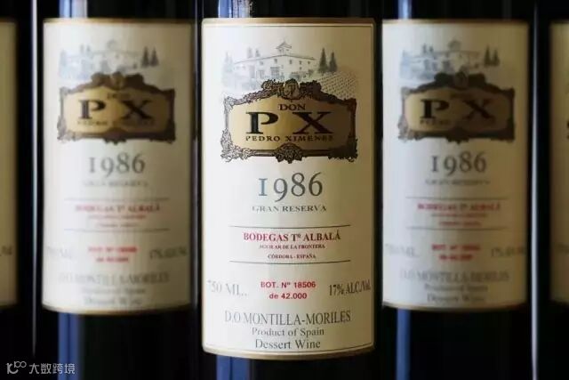 PX 雪利:用 PX 葡萄风干,浓缩葡萄中的糖度,酿成天然的甜型雪利酒,具有果脯、咖啡和香草的芳香。