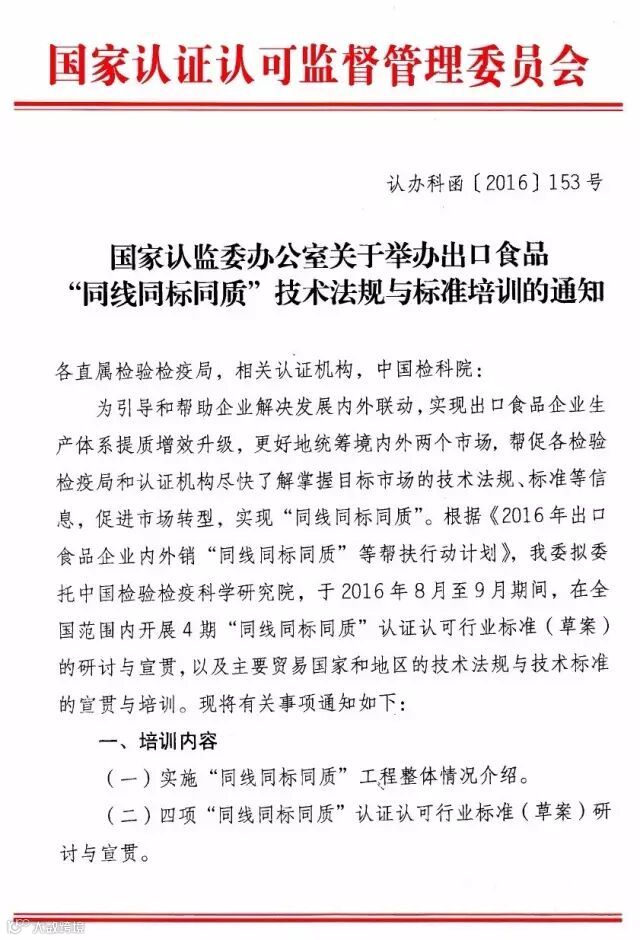 【通知】欢迎参加出口食品“同线同标同质”技术法规与标准培训