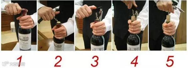 (4)软木塞出来一半时,再将第二关节扣住瓶口,重复之前的动作。
