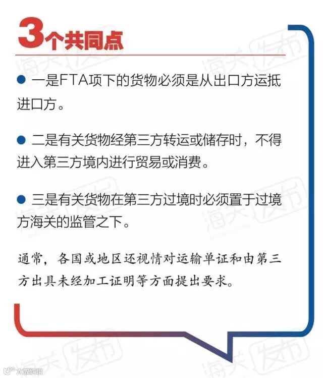 目前,各国签署的FTA中,均对缔约方之间货物直接运输作出了明确规定。这些规定虽各不相同,但共同点一般有三。