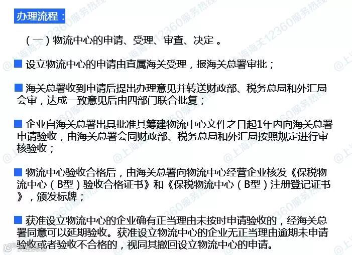 关于“保税物流中心(B型)设立行政审批事项”包括:申请条件、办理流程和申请时应提交的材料等。更多服务信息见下图: