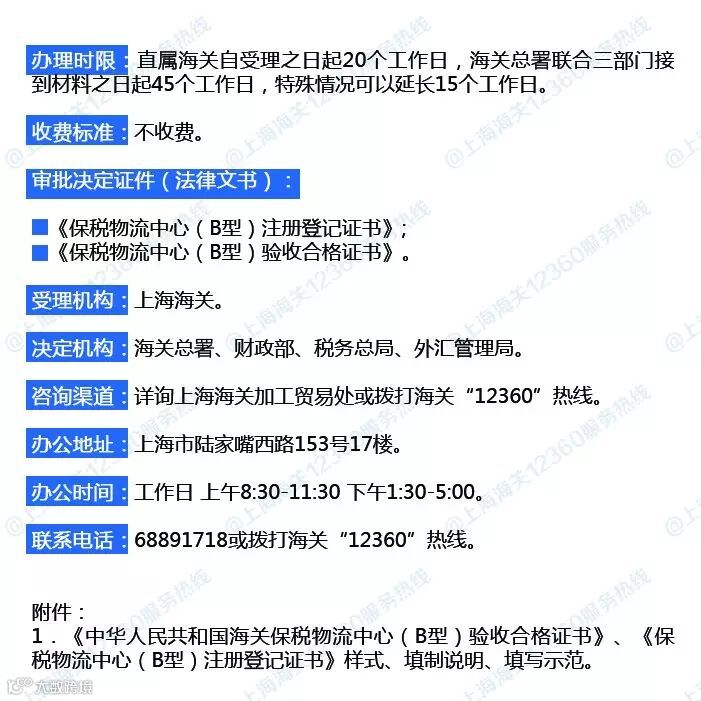 1.《中华人民共和国海关保税物流中心(B型)验收合格证书》、《保税物流中心(B型)注册登记证书》样式、填制说明、填写示范。