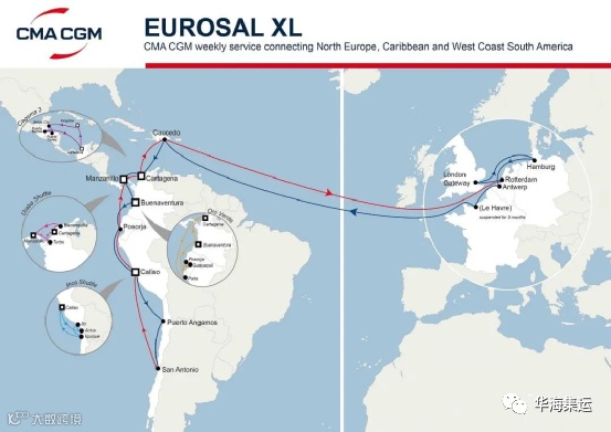 Eurosal服务将从“CMA CGM JEAN GABRIEL”轮预计7月6日抵达鹿特丹起,暂停勒阿弗尔的3个月停靠。为了覆盖从勒阿弗尔的进出口,达飞轮船将在整个暂停期间在安特卫普提供转运服务。