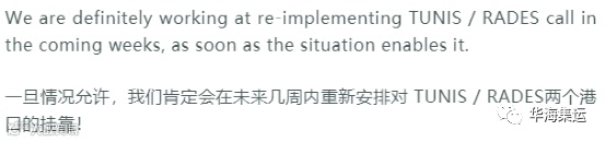 一旦情况允许,将重新安排对TUNIS/RADES两个港口的挂靠。