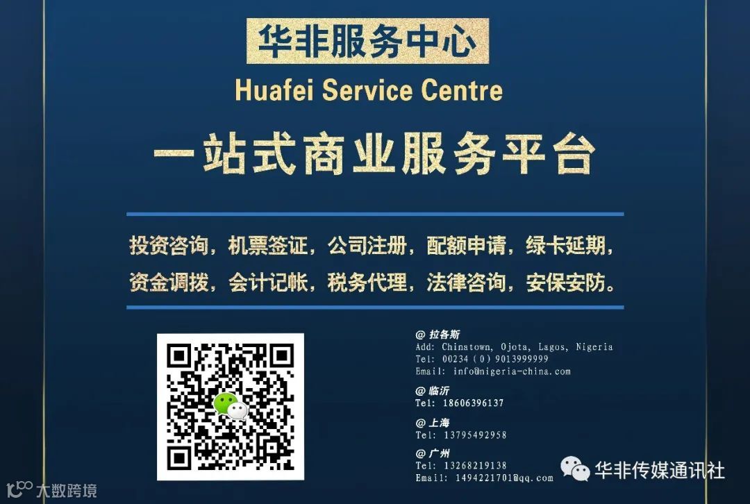(详情请参阅 华非网 www.nigeria-china.com 和 华非微信公众号:中投发展俱乐部zhongtou-club、华非物流huafei-logistics、昌安咨询changannigeria、华非传媒通讯社huafeimedia)