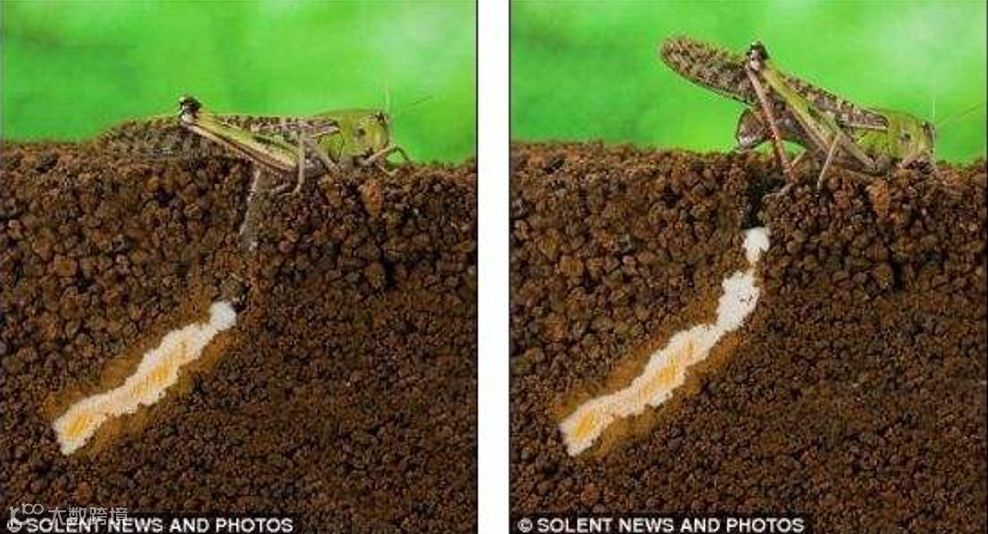 一只雌性蝗虫可产300颗虫卵,成长期仅为2个月,只要雨水充分,蝗虫一年可以孵育3-5代。