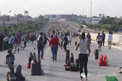 视频拍摄者表示,“已经没什么隔离了,从Jakande到Agungi,到处都是人”。