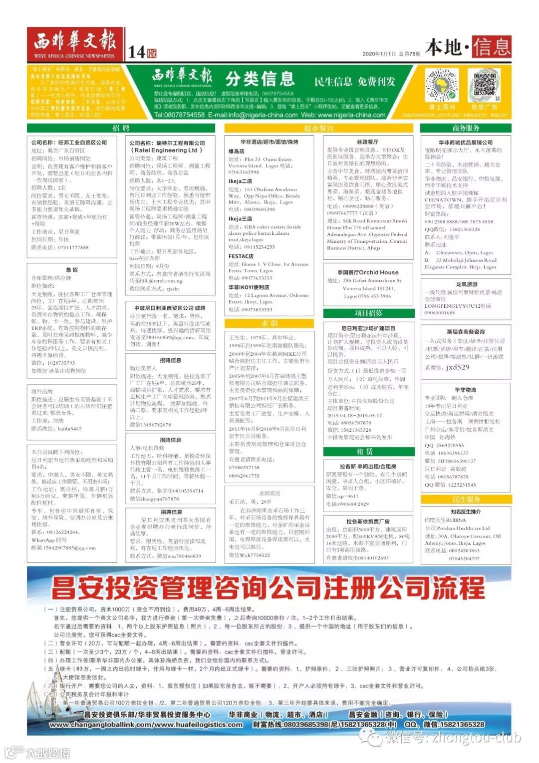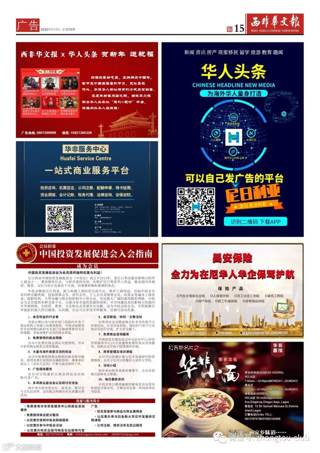 中投会植根尼日利亚,致力构建工商经贸交流平台,维护工商权益。目前中投会共有四种会籍类别,包括团体会员、商号会员、个人会员及联席会员,经营业务遍及工商各业、政联机构、大型金融与商业组织和中小型企业,形成强大广阔的商贸联系网络。中投会为会员提供多种交流平台、以便分享丰富的资源和商机,并共同建设具有影响力的海内外华商网络,为经贸、教育、文化和社会发展作出贡献。成为中投会的会员,不但能够分享彼此间强大的归属感、认同感,而且可以享受多种服务、设施与活动优惠。