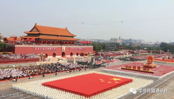 10月1日上午,庆祝中华人民共和国成立70周年大会在北京天安门广场隆重举行,20余万军民以盛大的阅兵仪式和群众游行欢庆共和国七十华诞。中共中央总书记、国家主席、中央军委主席习近平发表重要讲话并检阅受阅部队。国外专家学者认为,习近平主席的重要讲话再次宣示,发展起来的中国将坚持和平发展道路,继续同世界各国人民一道推动共建人类命运共同体。中国取得的伟大成就鼓舞着世界上其他发展中国家。