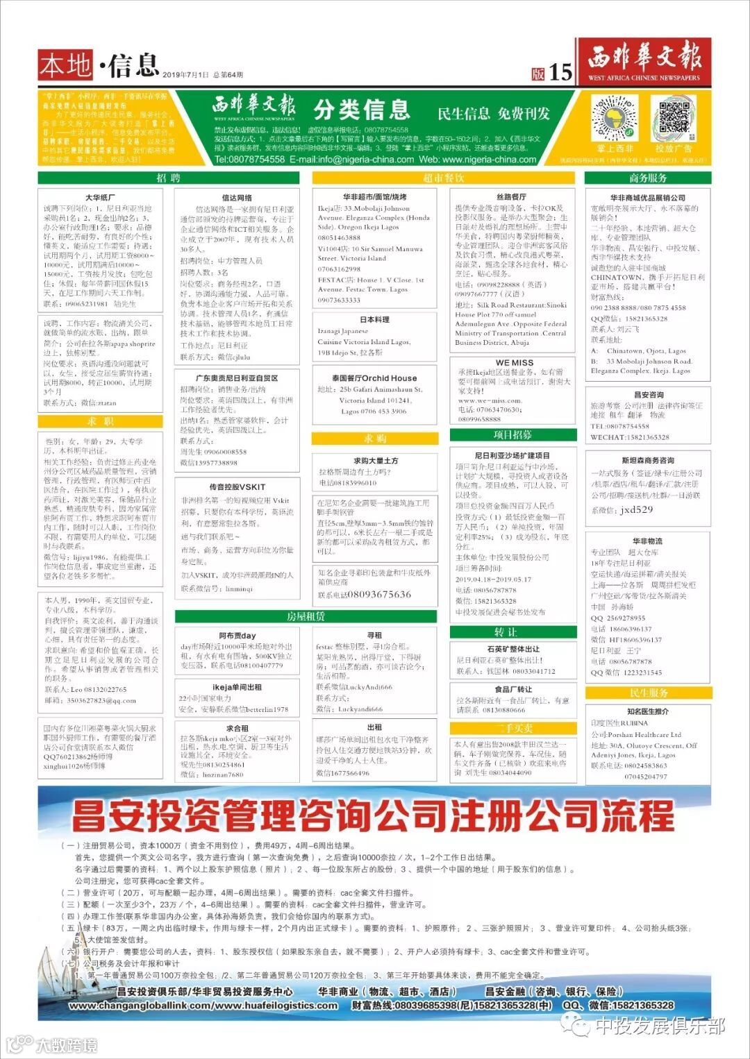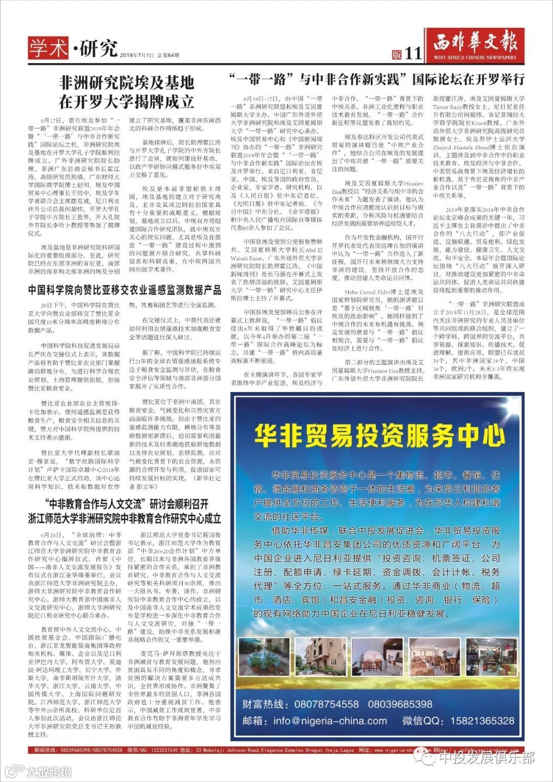 《西非华文报》2019年7月1日 总第64期 电子版 华非贸易投资服务中心
