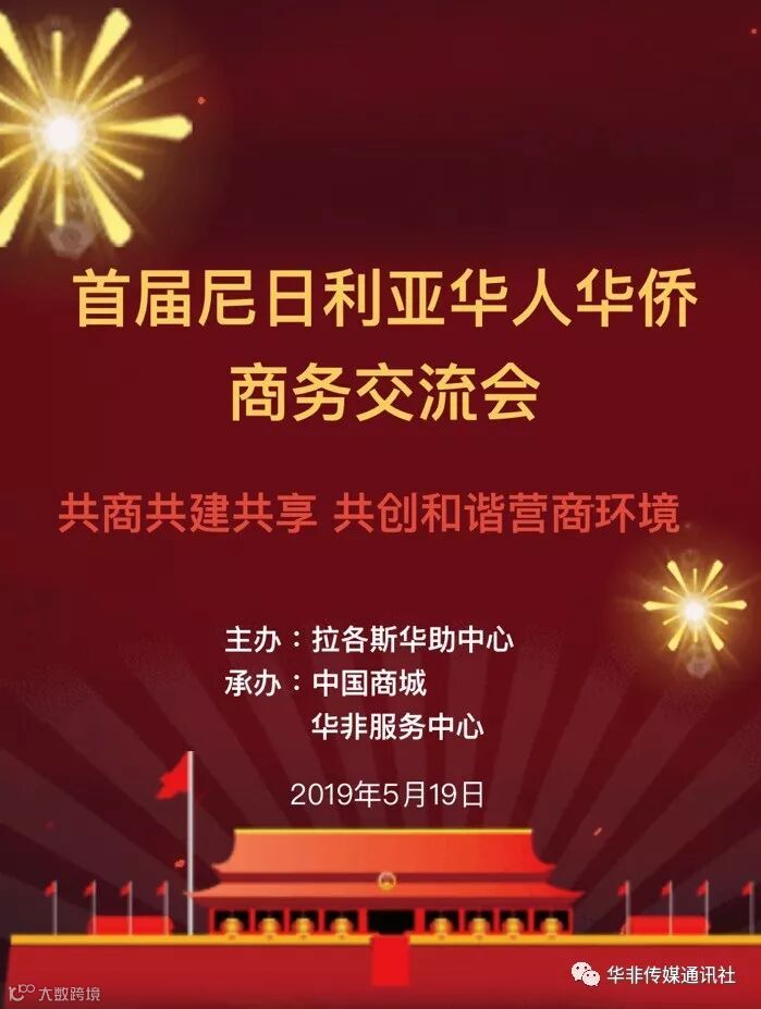 协办: 尼日利亚山东商会、尼日利亚华商青年会、尼日利亚福建同乡总会、尼日利亚粤港澳同乡会、中国商贸企业协会、中国投资发展促进会、拉各斯大学孔子学院、拉各斯大学尼中发展研究院