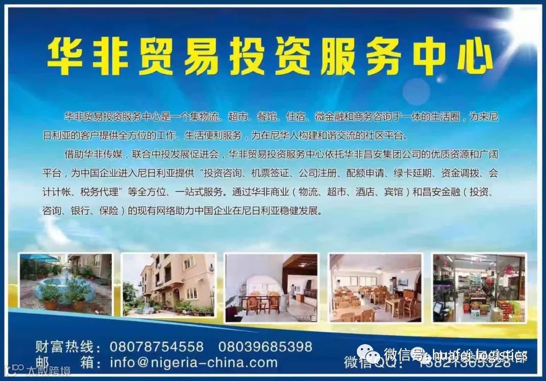 详细请参阅尼日利亚华非信息中心(群号319260146)编译的《华非财经资讯》同时可订阅华非物流微信公众号:huafei-logistics了解详细内容华非物流--您的生意搭档微信QQ:1223231545电话:08056787878
